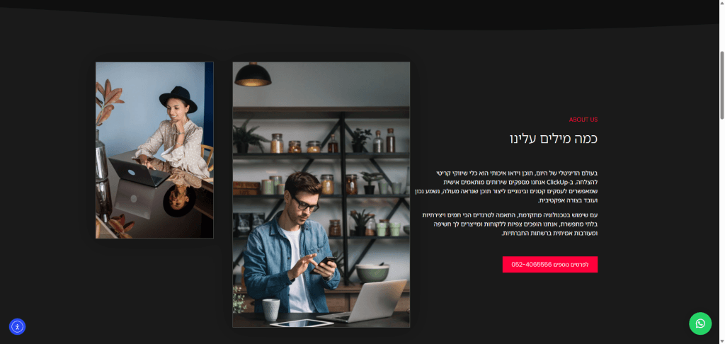 כשיש לך אתר באינטרנט, אתה במרכז – והלקוחות סביבך. הם מחפשים פתרונות, בודקים אפשרויות ומגיעים אליך מכל כיוון ובכל שעה. האתר שלך זמין 24 שעות ביממה, מציג את העסק בצורה מקצועית, יוצר אמון כבר מהרגע הראשון ומוביל את הלקוח לעשות את הצעד הבא. זה לא רק אתר – זה כלי שיווקי שעובד בשבילך מסביב לשעון, מחבר בינך לבין הלקוחות וממקם אותך בדיוק במקום שבו מחפשים אותך.