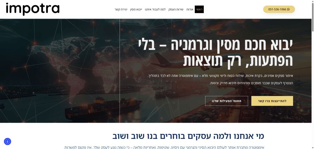 כולל תמונות אווירה, אייקונים ואלמנטים גרפיים שמחברים את הכול למראה אחיד ומקצועי. אתר שנראה רציני ומכבד את העסק.